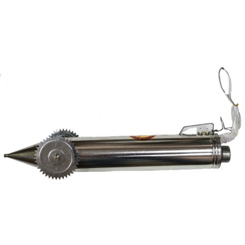 Торпеда для протяжки сетей подо льдом, металлическая. В корпусе батареики и электродвигатель, крутящий крупные зубчатые колеса, цепляющиеся за нижнюю плоскость льда. У «торпеды» в задней части корпуса имеется отключатель с привязанной к нему длинной верёвкой. Рыболов включает электродвигатель и внимательно прицелившись, запускает «торпеду» в поездку к соседней лунке под водой (по нижней плоскости льда). Там ее улавливает другой рыболов. Для удобства можно использовать сачок. В случае если «торпеда» промахнулась — тогда 1-ый рыболов дёргает за верёвку, останавливает электромотор и выволакивает «торпеду» к себе в лунку с дальнейшим повторением «заезда». Используется с целью подлёдной постановки рыболовных сеток.На корпусе могут пребывать электрические лампочки для зрительного контролирования через лёд за направлением движения - к примеру, при постановке сеток в ночной период.