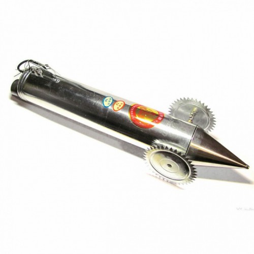 Потянув веревку 1 раз на себя, одновременно включается мотор крутящий колеса и светодиод, делающий легче поиск торпеды подо льдом.