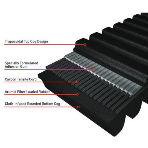 Карбоновый корд ремня вариатора обеспечивает оптимальную передачу мощности, обеспечивая лучшую приёмистость и ускорение.